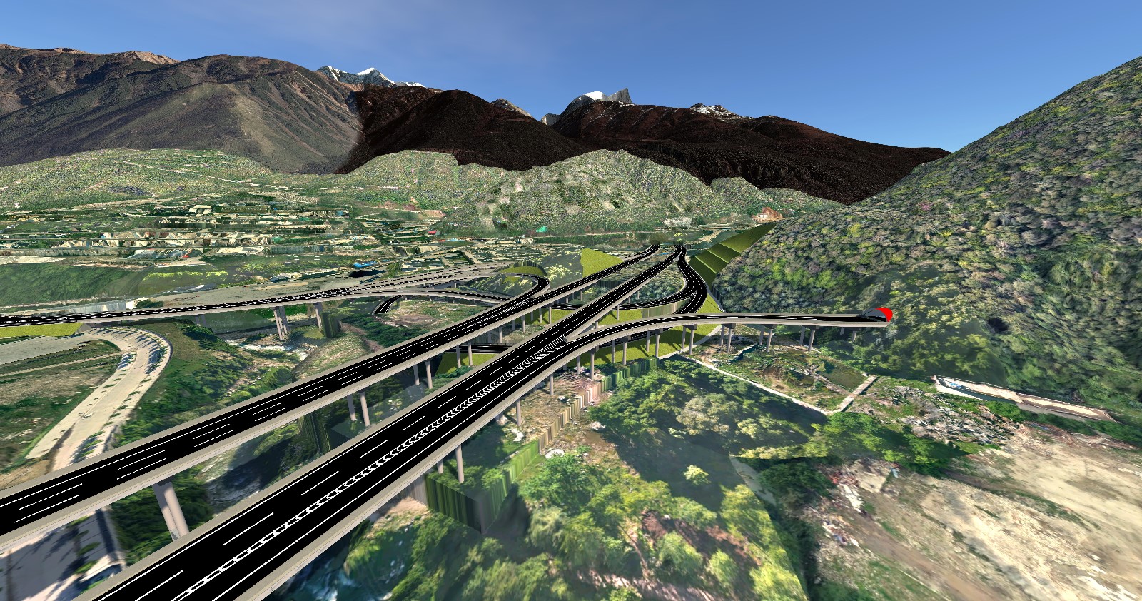 康定至新都桥高速公路康定过境试验段路线起于康定城东升航接雅康高速(K130+130)、设康定互通接G318线,设跑马山1号隧道(长8780米)至康定市救灾防灾应急中心,设跑马山2号隧道(长7395米)至康定榆林驷马桥村,路线止于榆林新城,设康定榆林互通接G318线。路线长度18.044公里,共设置两座主线桥梁590.5米/2座,共设置两座特长隧道共计16175米,桥隧比例94.3%;共设置互通式立交2处。榆林互通立交连接线1.8公里。拟采用四车道高速公路技术标准,设计速度80公里/小时,路基宽度25.5米,桥涵设计汽车荷载公路-1级,互通立交连接线采用二级公路标准。采用沥青混凝土路面,其余指标按《公路工程技术标准》(JTGB01-2014)的规定与要求执行。