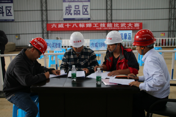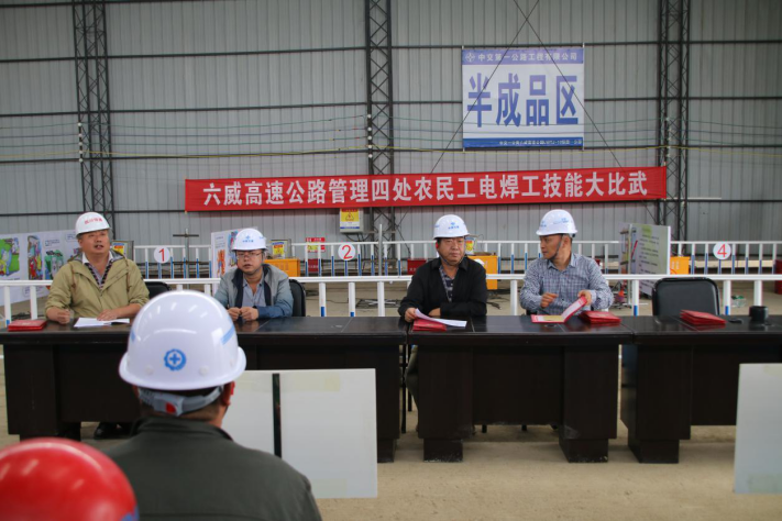 8月30日下午,在六威项目第十八合同段一工区开展为贯彻落实省委、总工会、人社厅对农民工服务的倡导。根据《贵州省交通运输厅系统“贵州农民工匠” 培育行动实施方案》的具体要求,六威项目以培育“贵州农民工匠”为契机,以“展工匠精神,创高速先锋”为主题,在项目建设过程中弘扬工匠精神。六威高速LWZ4中心试验室协助六威四处组织管段内四个标段电焊工举办电焊工技术比赛活动。